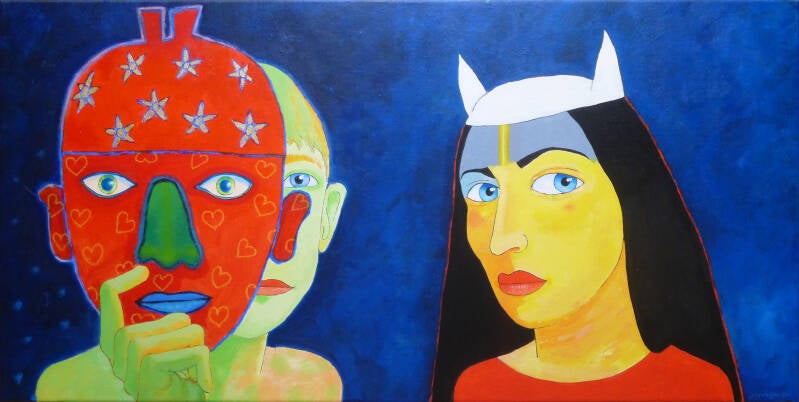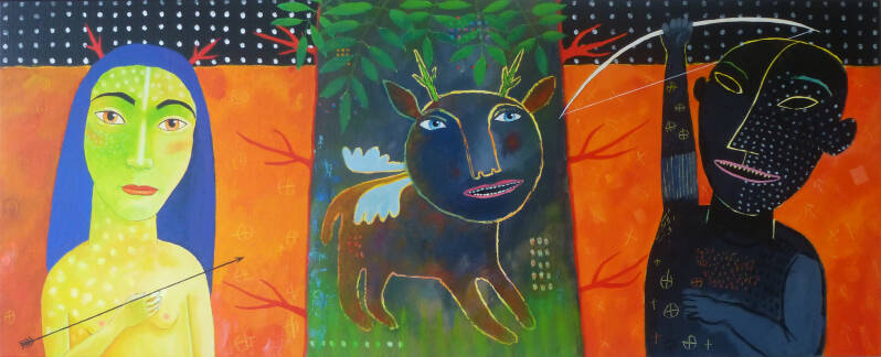 Mary meets her angel - acryl/linnen 60x140